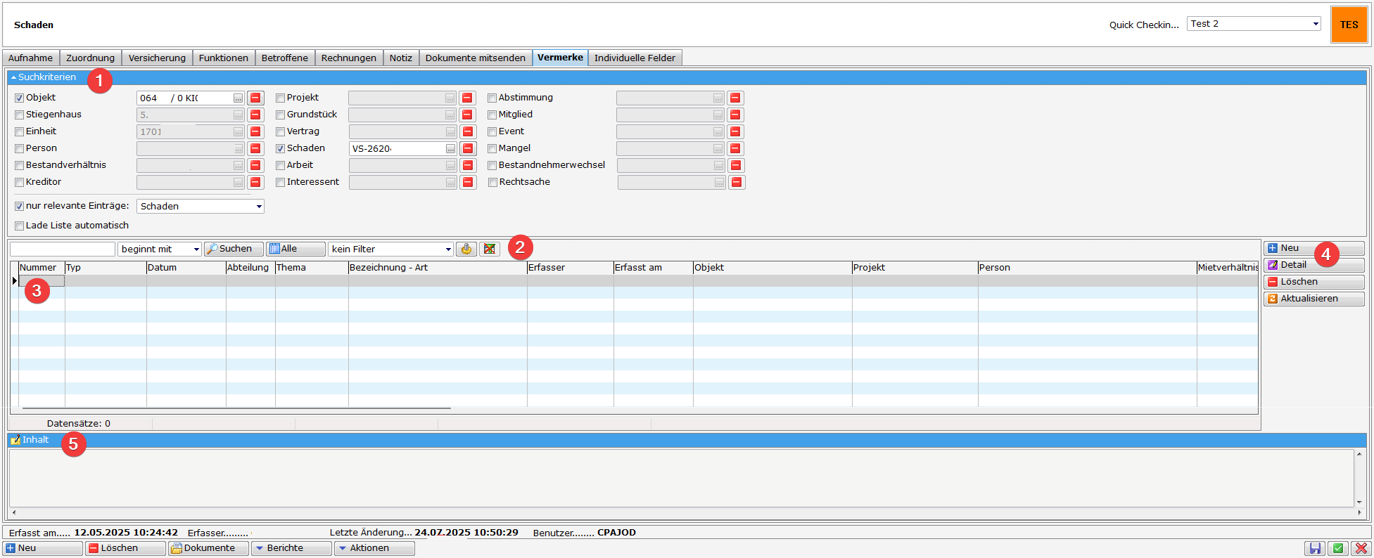 verknüpfte Datensätze, wie Vermerke oder Aufträge. Neben den jeweiligen