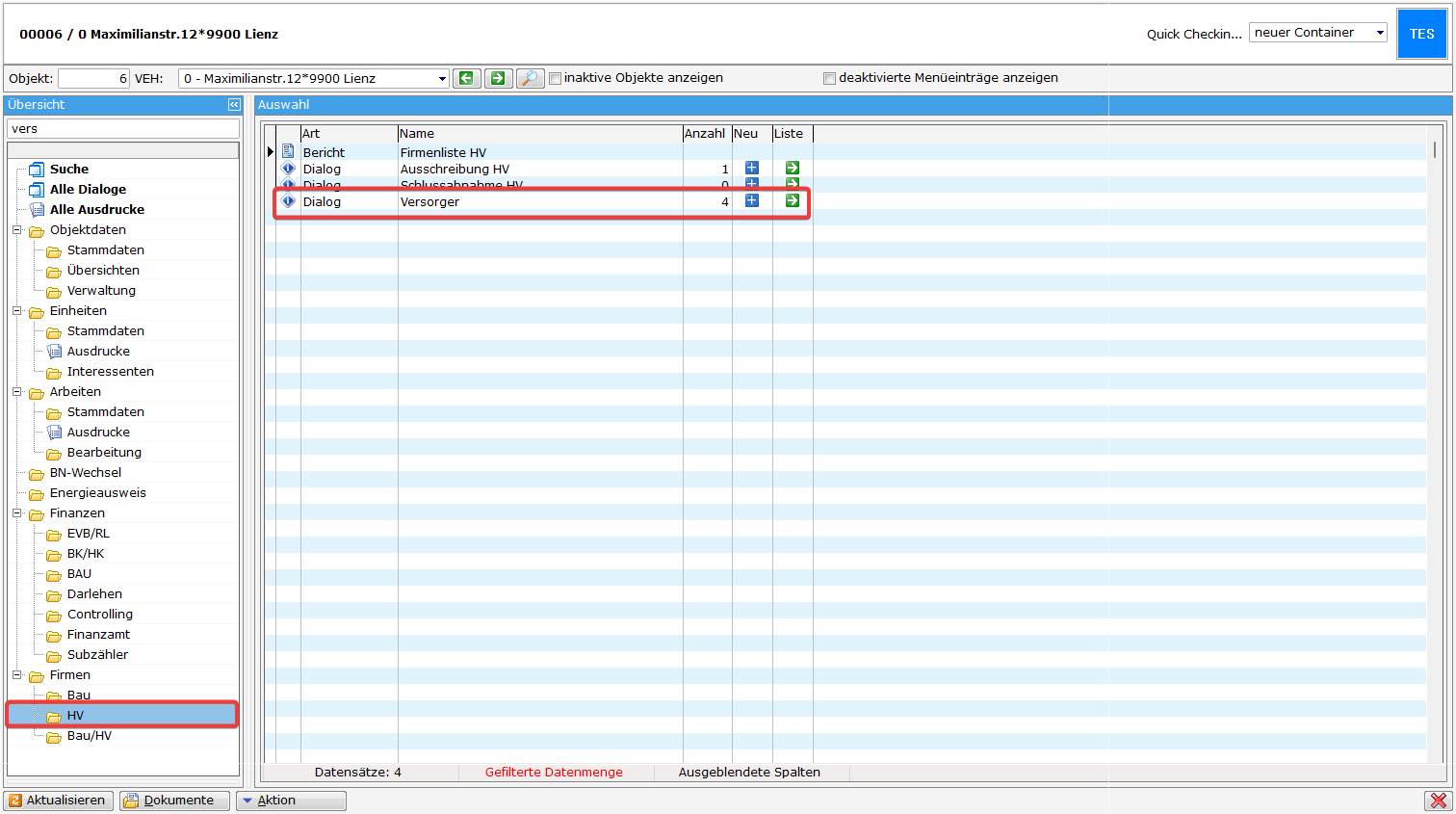 können Sie über den Bereich Firmen - HV des Objektmenüs finden.