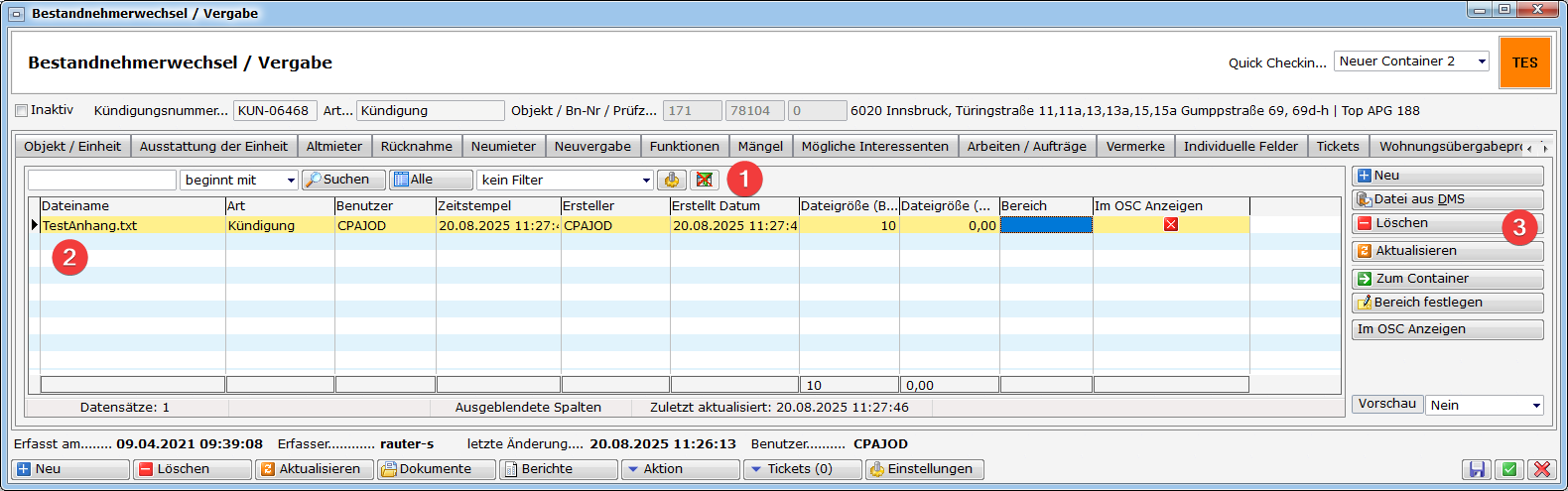 Insofern ein Wohungsübergabeprotokoll vorhanden ist, dann können Sie diesen mit einem Doppelklick öffnen.