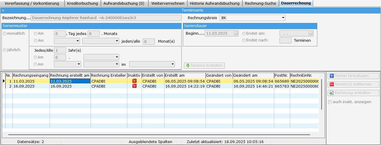 Dieser Job kopiert den Container mit der Rechnung und das dazugehörige RDB, wenn das Tagesdatum dasselbe Datum wie das des Dauerrechnungstermins ist.